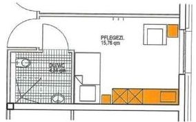 Dieser Teil der Seniorenresidenz wurde im Jahr 2003 errichtet. Er umfasst 42 Wohnungen sowie 28 Pflegeappartements.Zum Verkauf steht dieses Pflegezimmer mit einer Fläche von ca. 48 m².
