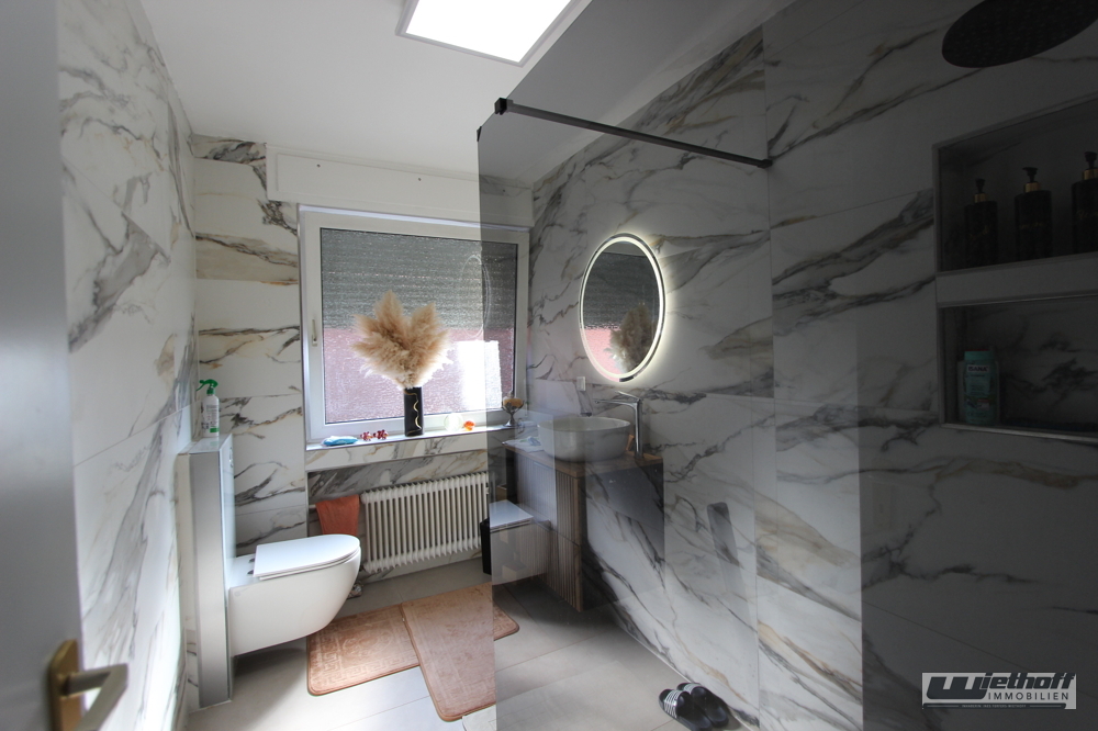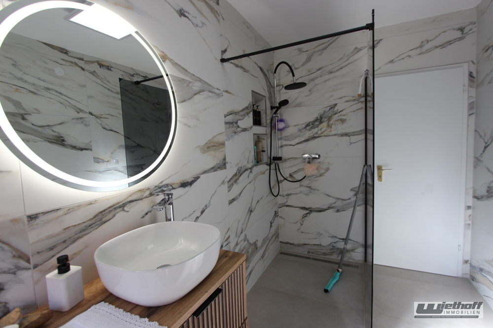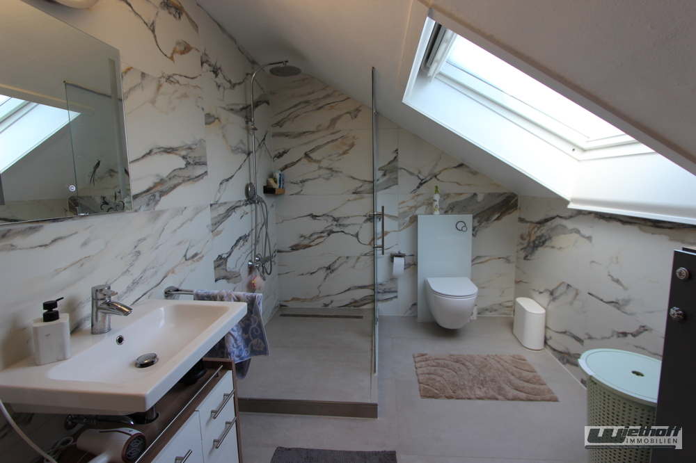 Zwei Tageslichtbäder - jeweils mit großen Walk-In-Duschen sowie ein Gäste-WC runden das Angebot ab.