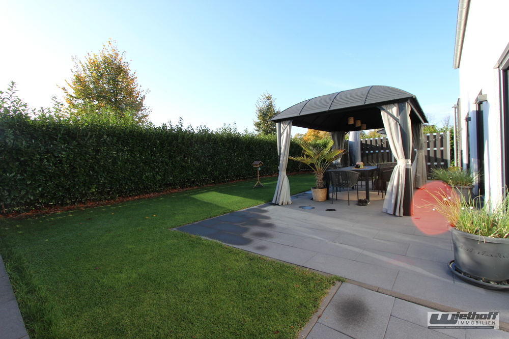 Das ca. 625 m² große Kaufgrundstück ist ideal geschnitten und pflegeleicht angelegt. Die Gartenbewässerung erfolgt komfortabel über eine eigene Zisterne. Rasensprinkler-Anlage mit Versorgung durch den Regenwasser-Speicher. Der Garten ist Richtung Süden ausgerichtet.